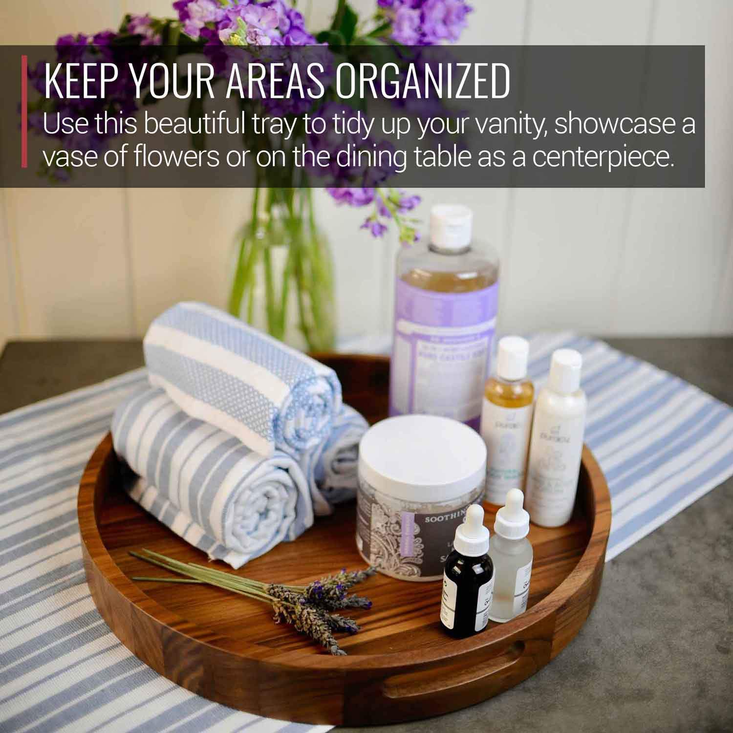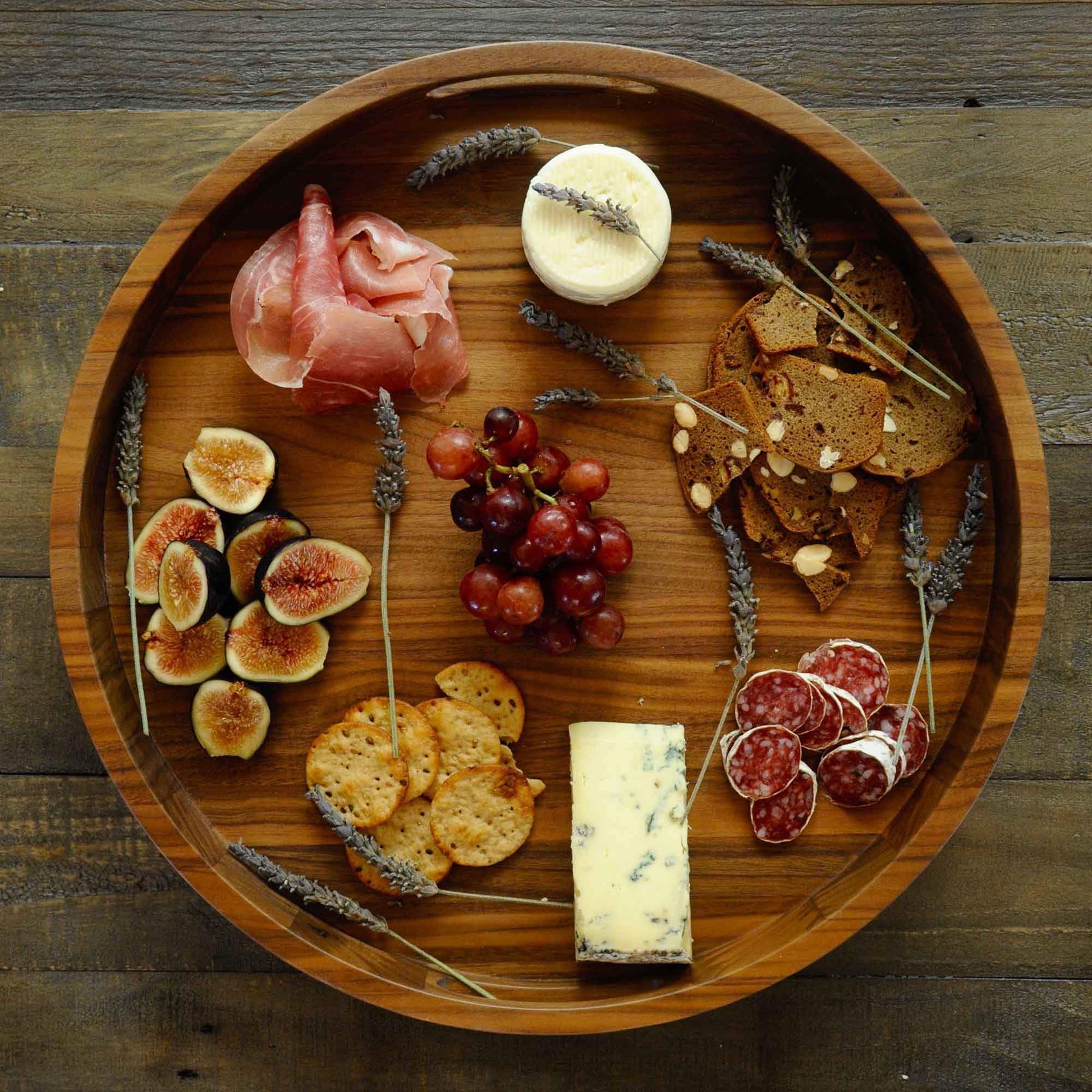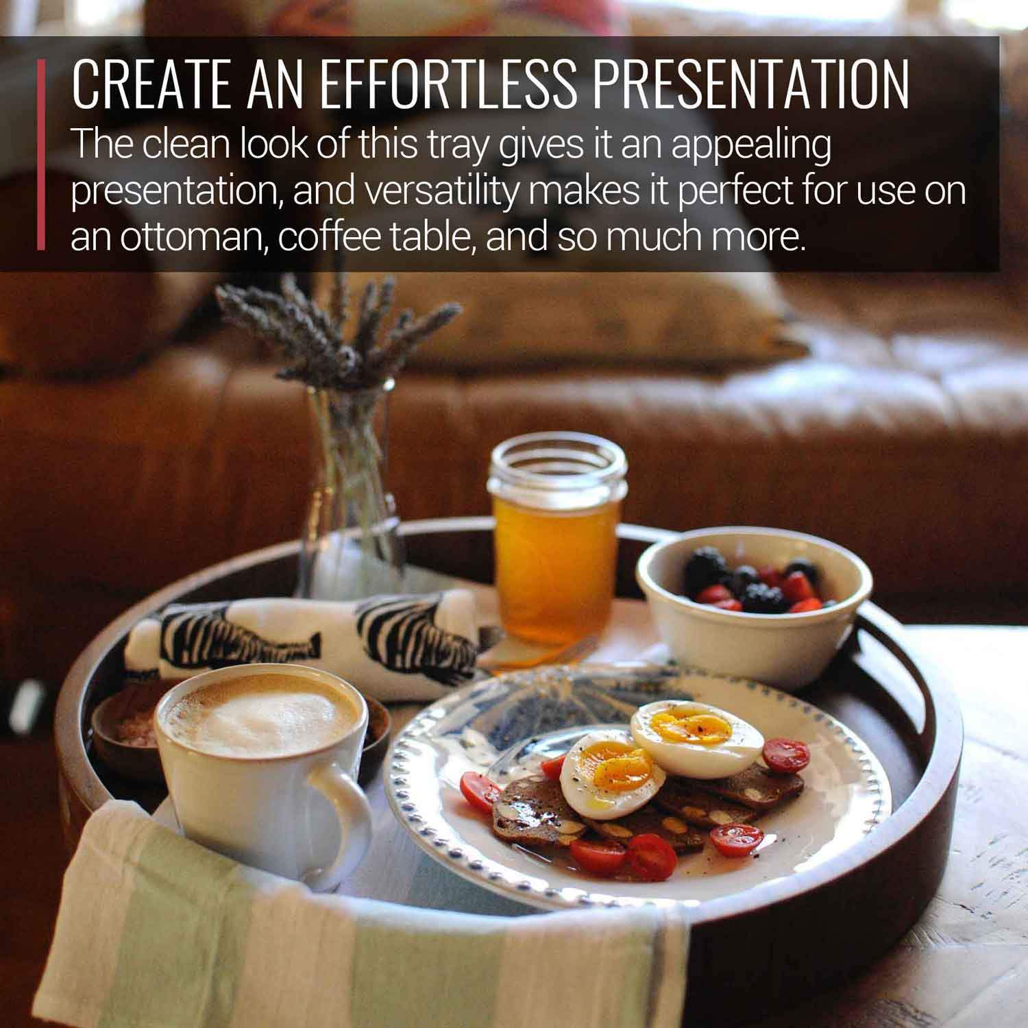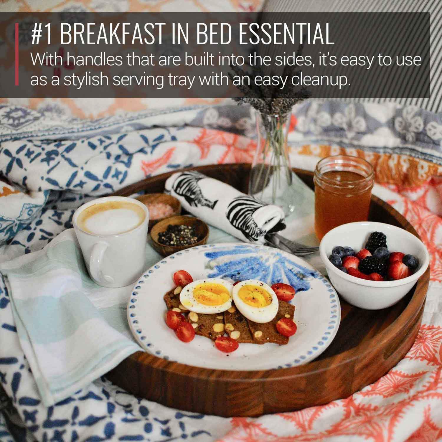 16.5 Inch Round Walnut Wood Serving and Coffee Table Tray with Handles by Virginia Boys Kitchens