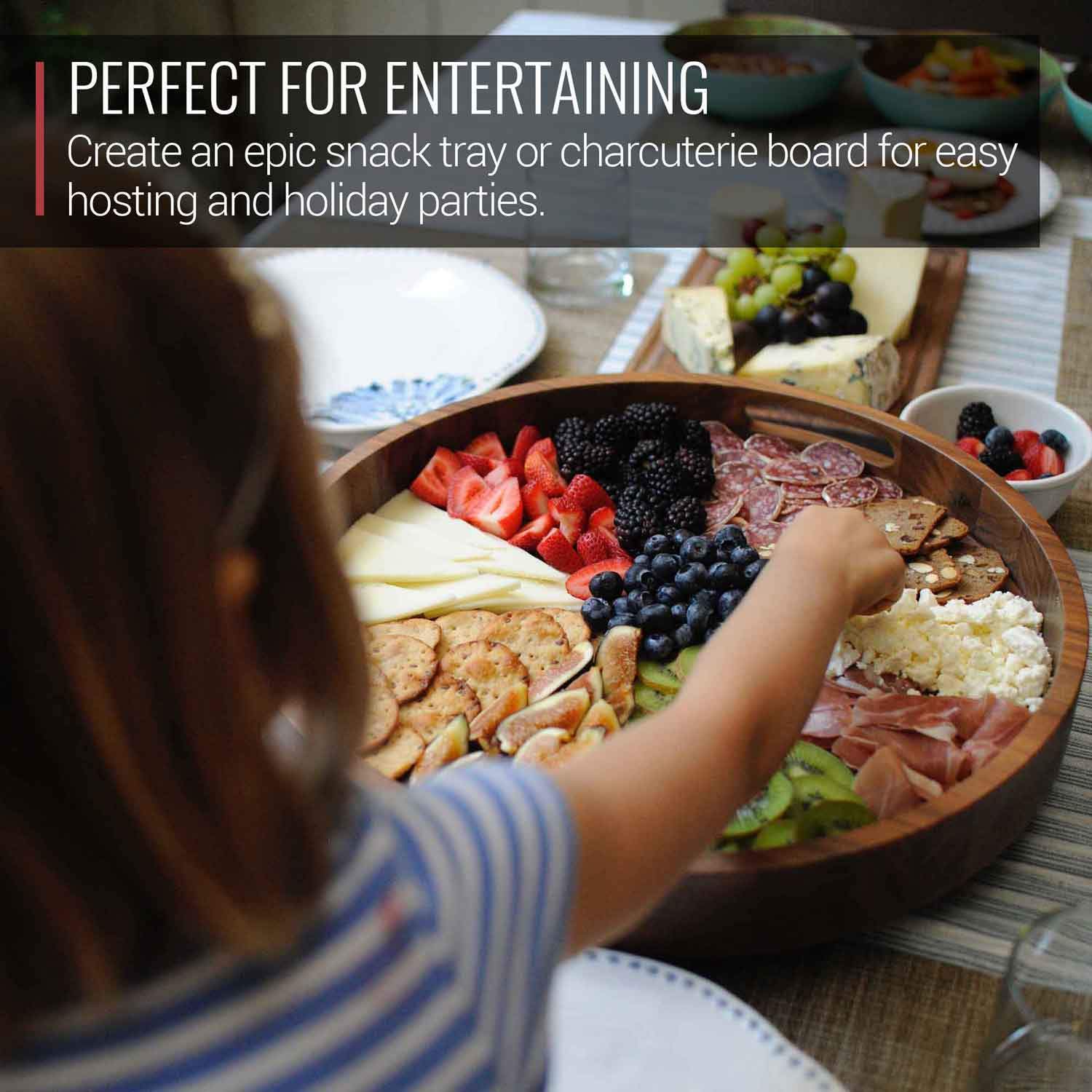- Single piece tray carved out from a 17 x 17 x 2 butcher block