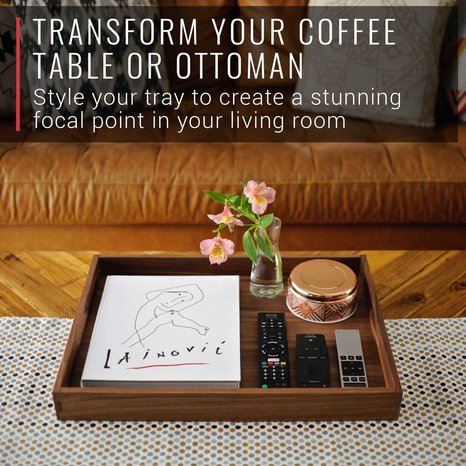 20 x 15 Inch Rectangular Walnut Wood Serving and Coffee Table Tray with Handles by Virginia Boys Kitchens