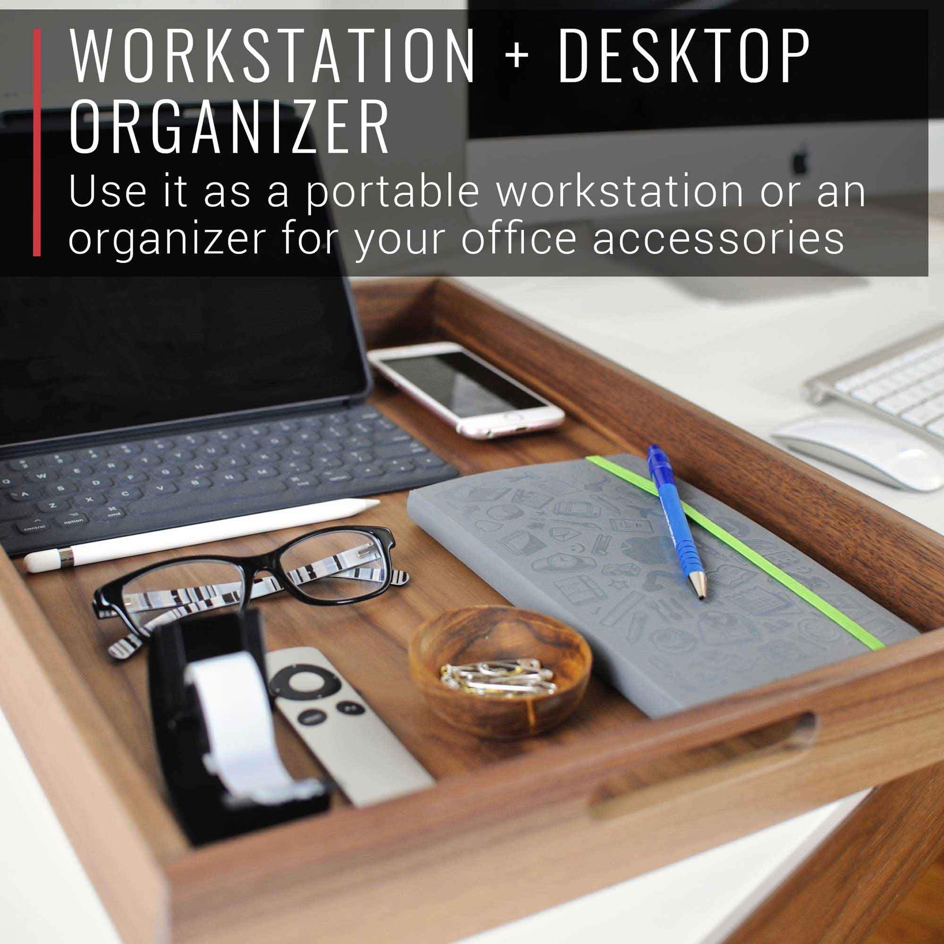 - Useful as an organizer for toiletries + perfume or as a portable workstation