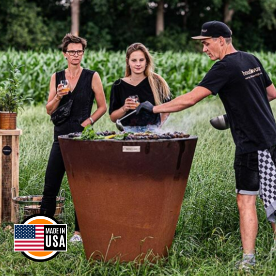 If you have an Arteflame 40” Fire Pit and you decide to also use it as a grill, you can purchase the optional cooktop with grill grate.  It instantly converts your fire pit into an Arteflame Grill.