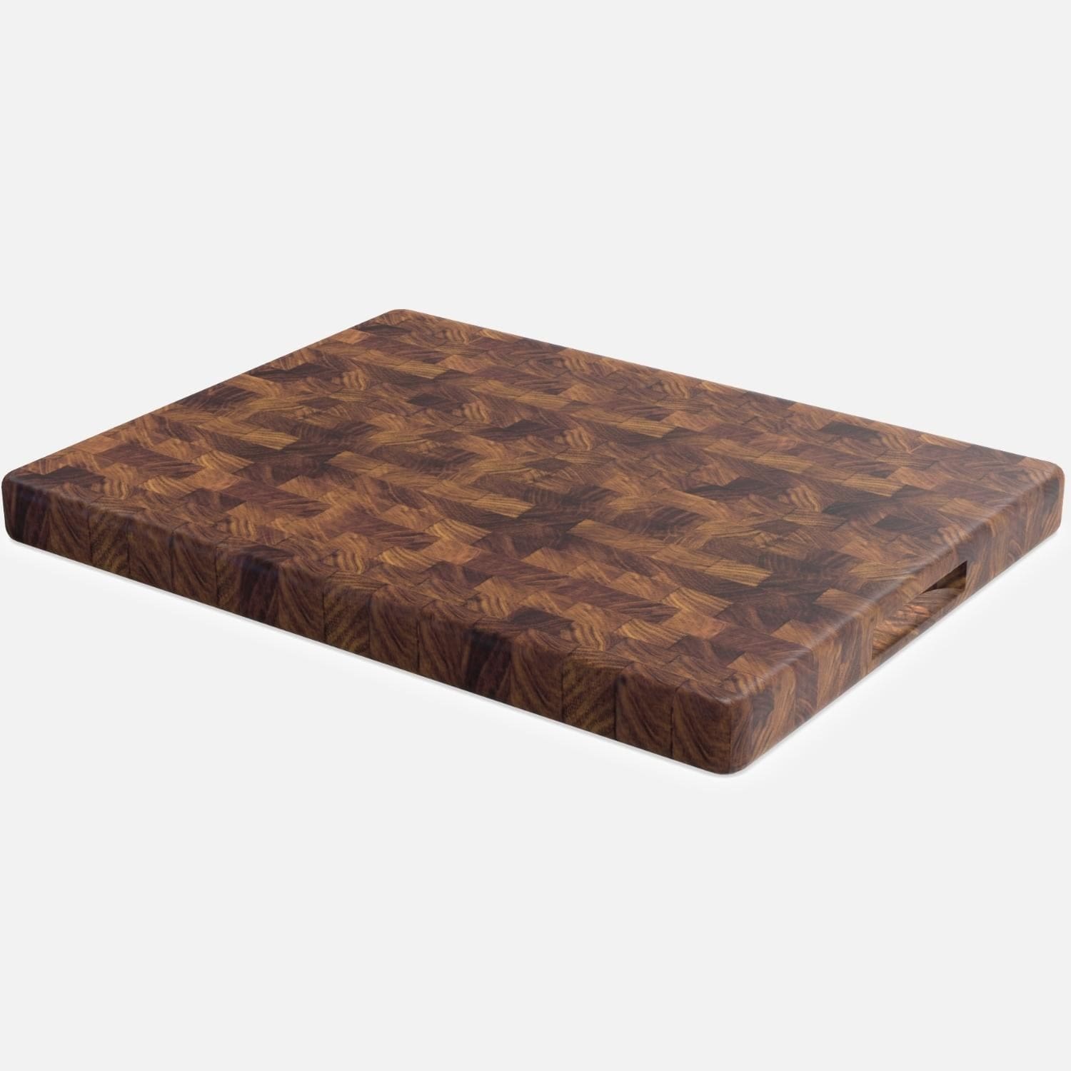 Our 15x20″ Reversible Walnut End Grain Cutting board with Built In Handles is 1 5/8 inch. It is hand crafted right here in the USA from Sustainable American Hardwood Walnut. It's large size makes it a perfect high end prep and serve board. End grains are meant to be used for all your toughest jobs, they are strong but gentle on your knives while offering self-healing properties. Slice, chop, and serve all your culinary dreams. Keep it on your counter because this board is meant to be used, but when it's not it's elegant enough to display.