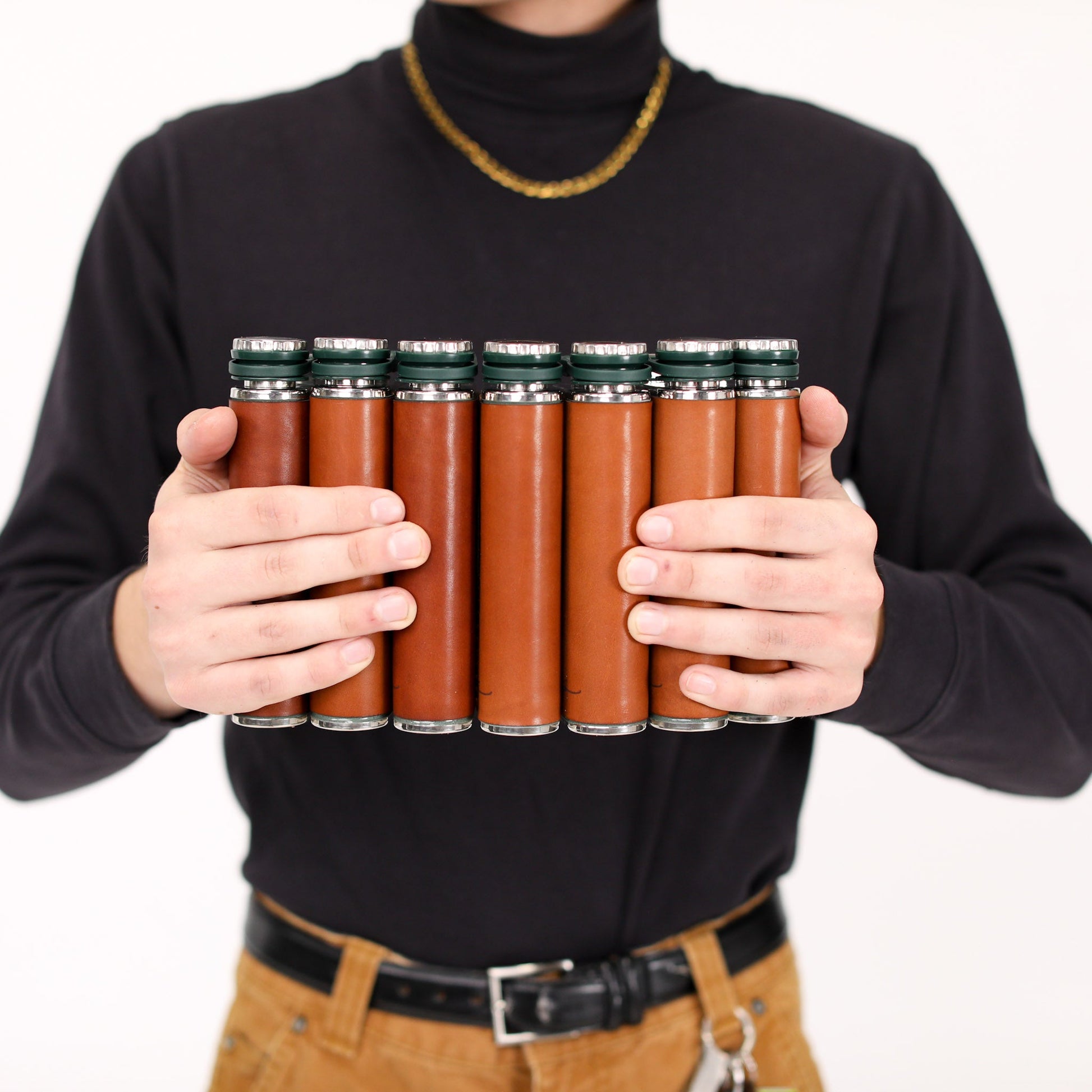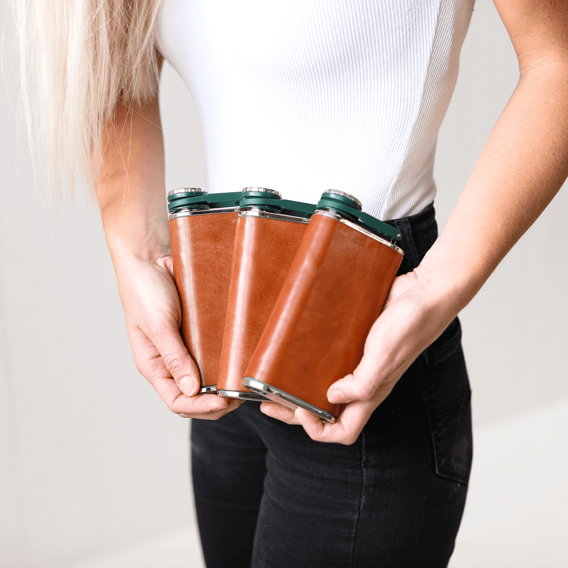 High quality, wide-mouthed, 18/8 stainless steel Stanley® flask hand sewn with 100% genuine American leather. This leather flask is perfect for the travel and built to last a lifetime.