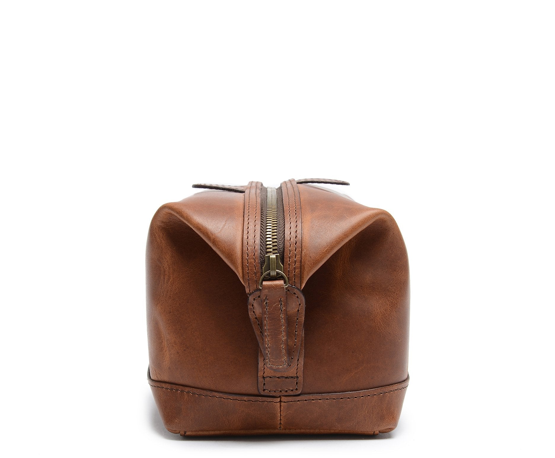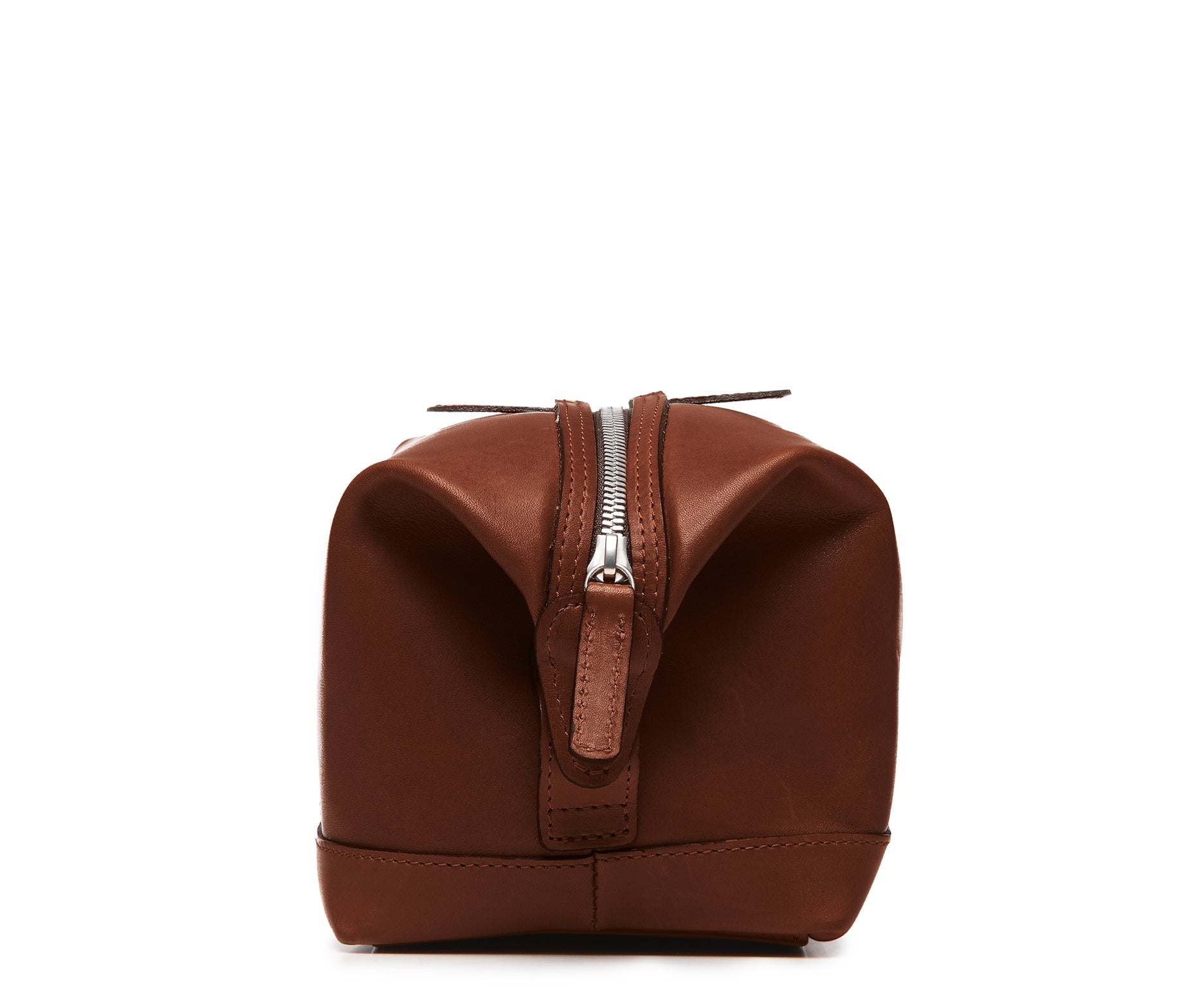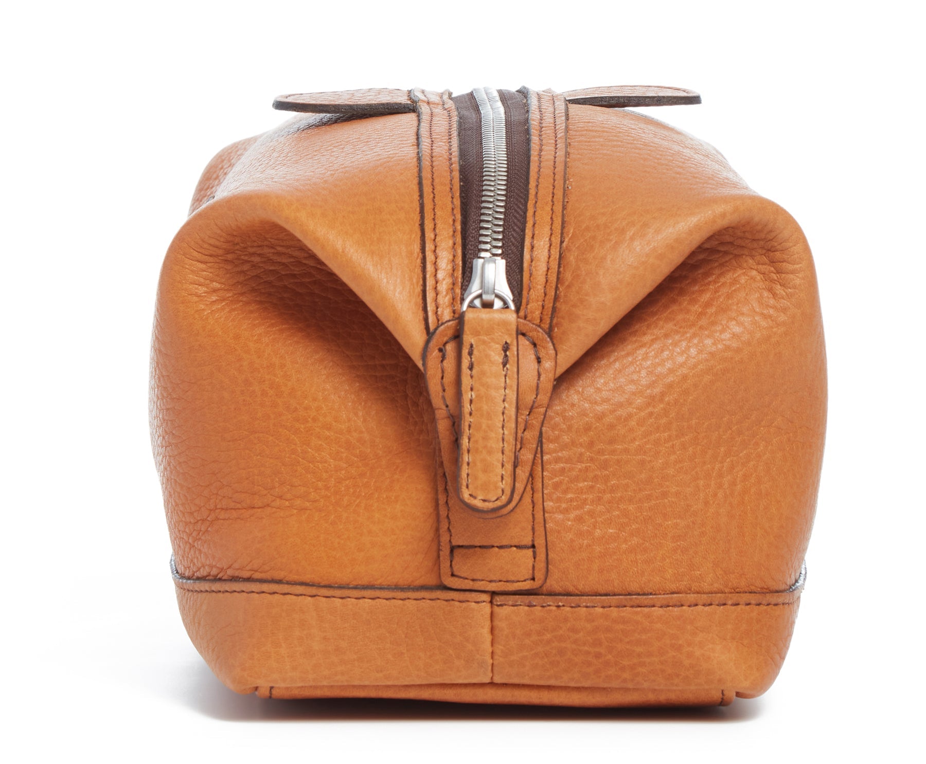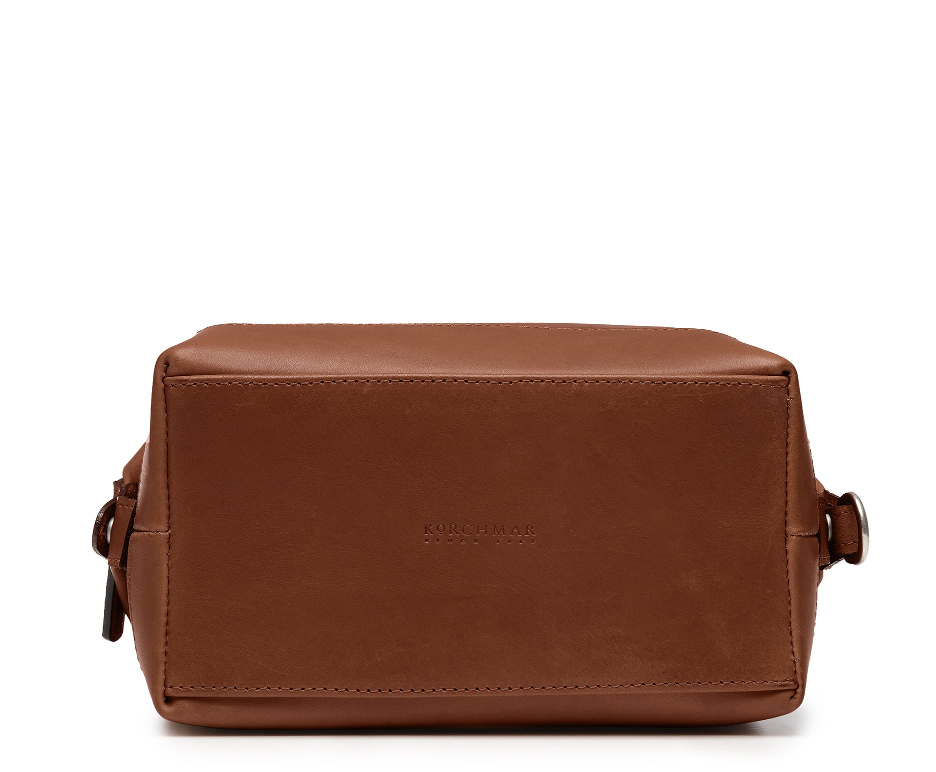 Leather Dopp KitThe Ryder dopp kit in Korchmar's Classic Leather is made of American cowhide leather that is selected from the top 5% of available hides. Colored only with aniline dyes, this leather retains its natural beauty over time and features visible markings that are characteristic of only the finest leather. The Ryder features a top zipper and snap down ends that allow for maximum expansion.