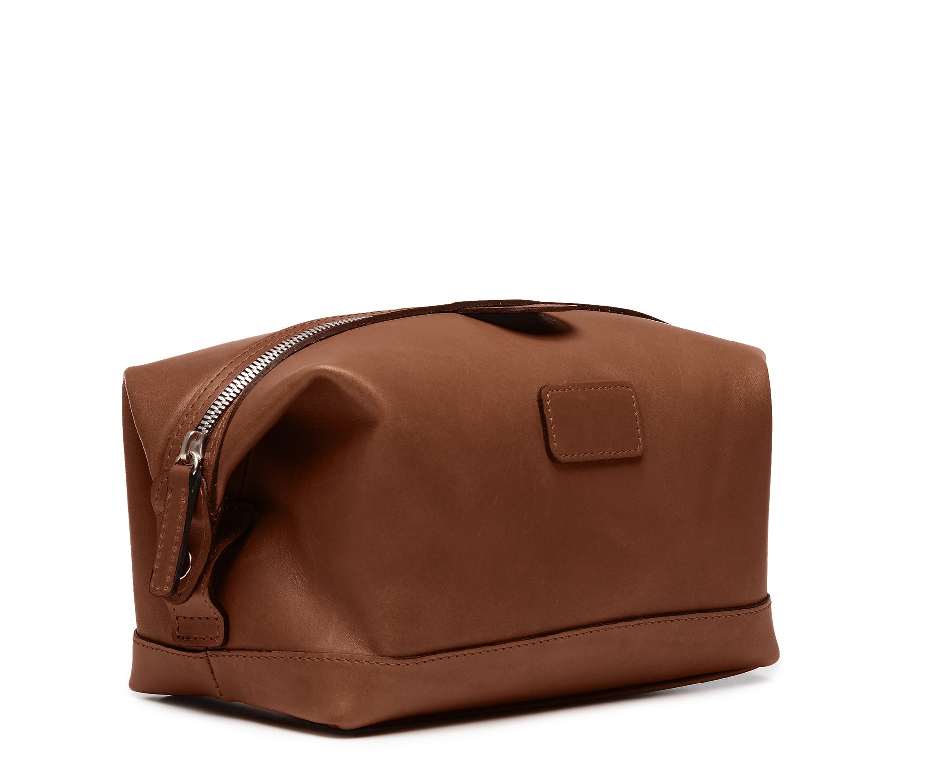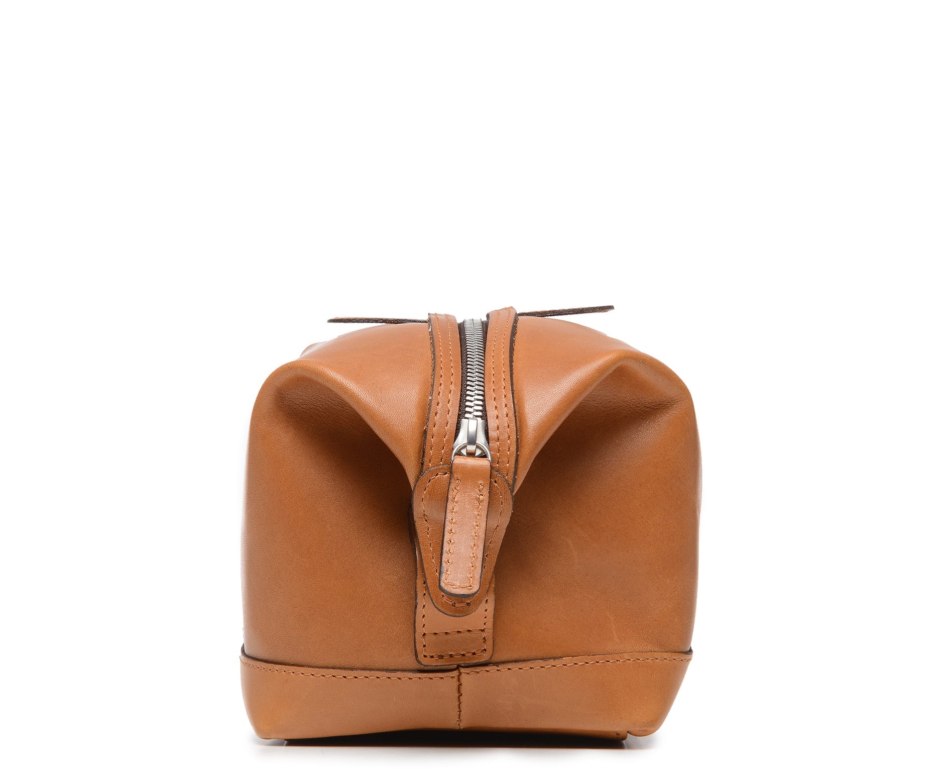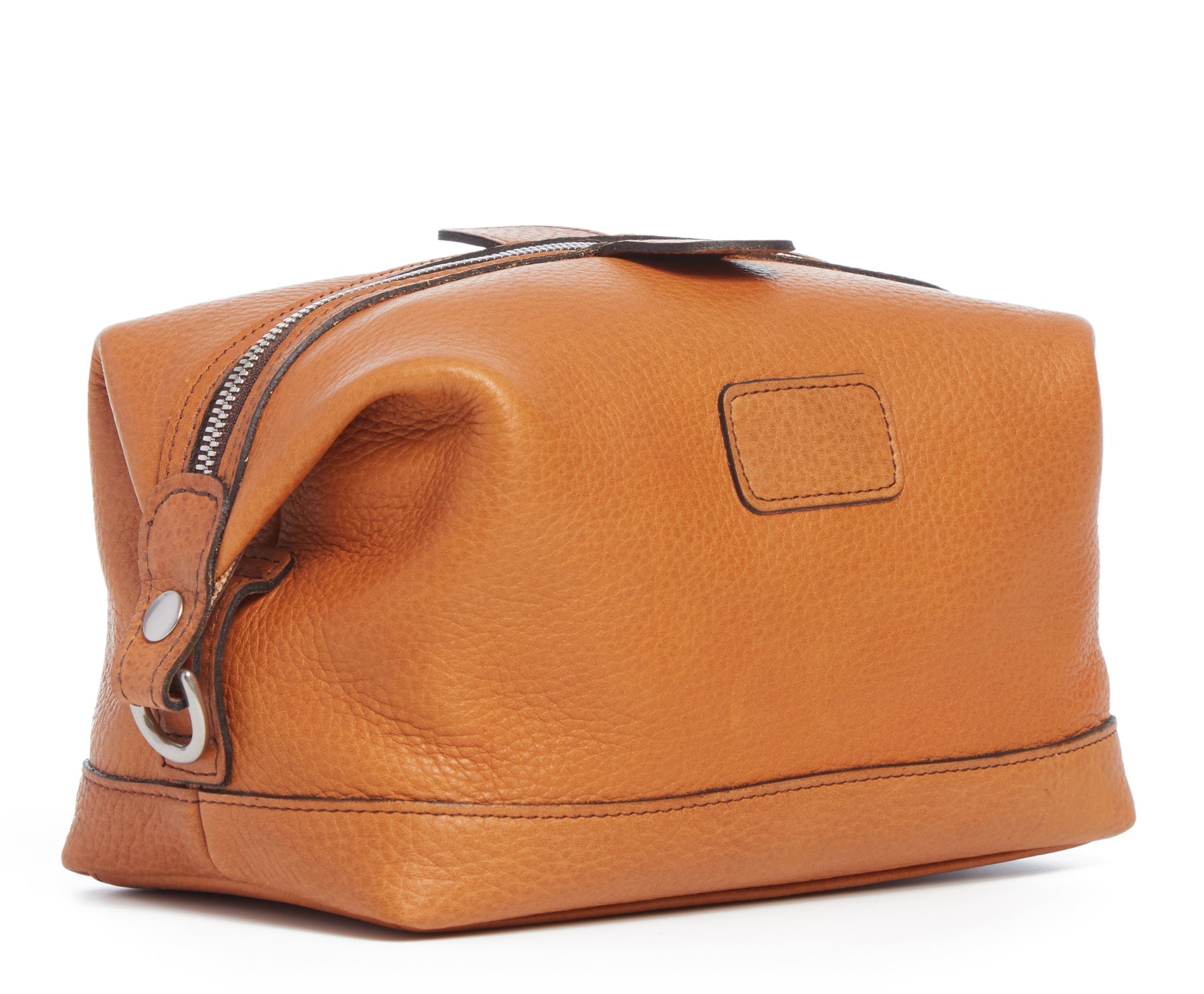 Leather Dopp KitThe Ryder dopp kit in Korchmar's Classic Leather is made of American cowhide leather that is selected from the top 5% of available hides. Colored only with aniline dyes, this leather retains its natural beauty over time and features visible markings that are characteristic of only the finest leather. The Ryder features a top zipper and snap down ends that allow for maximum expansion.