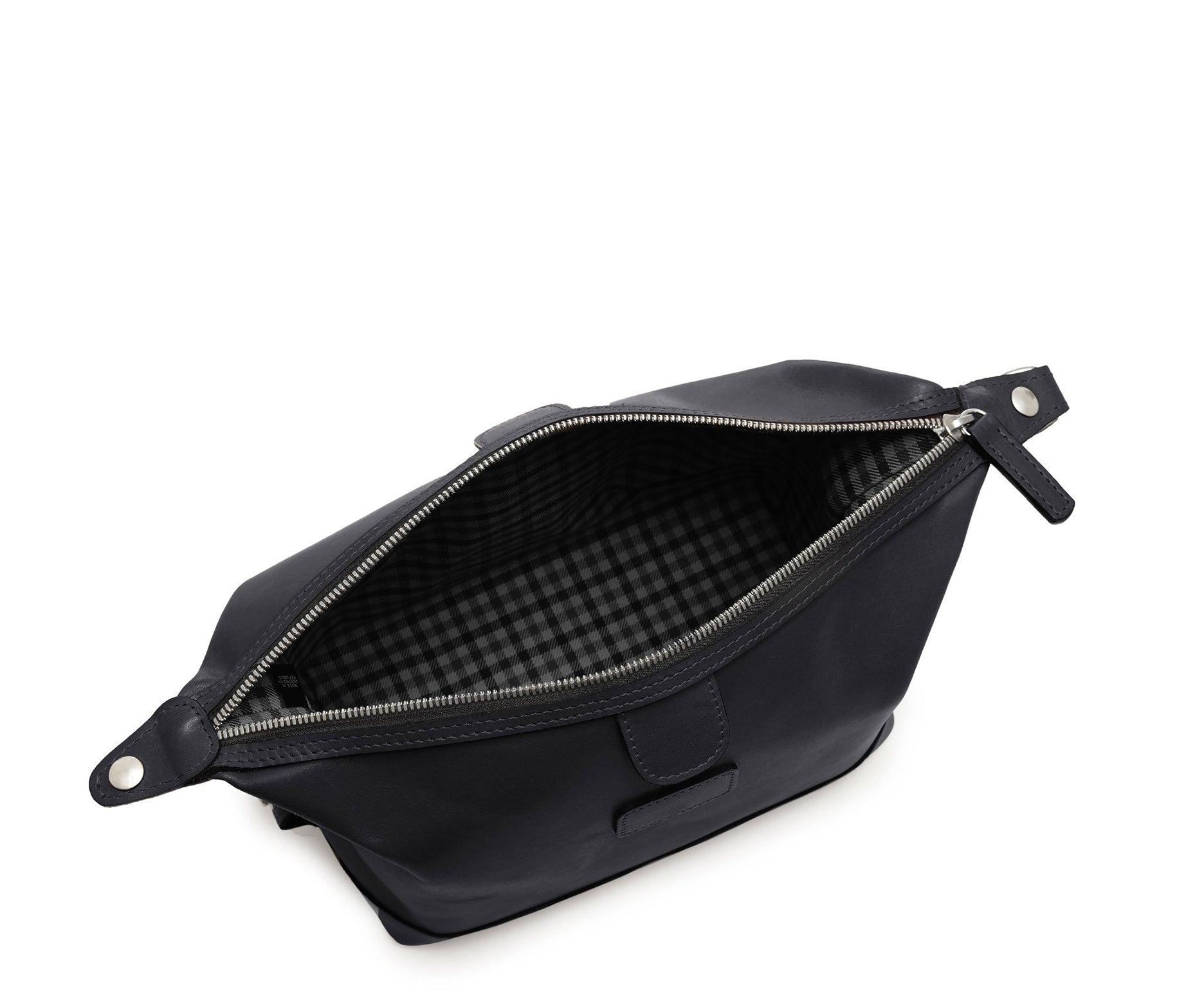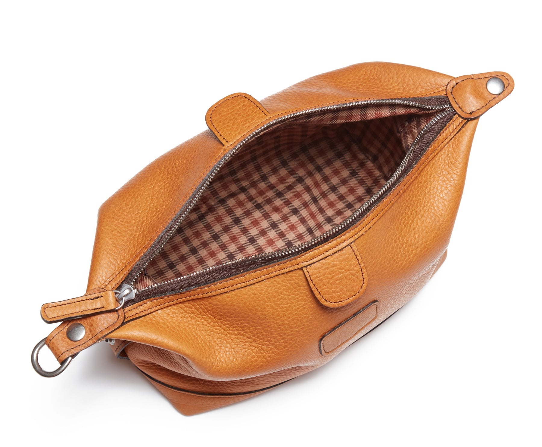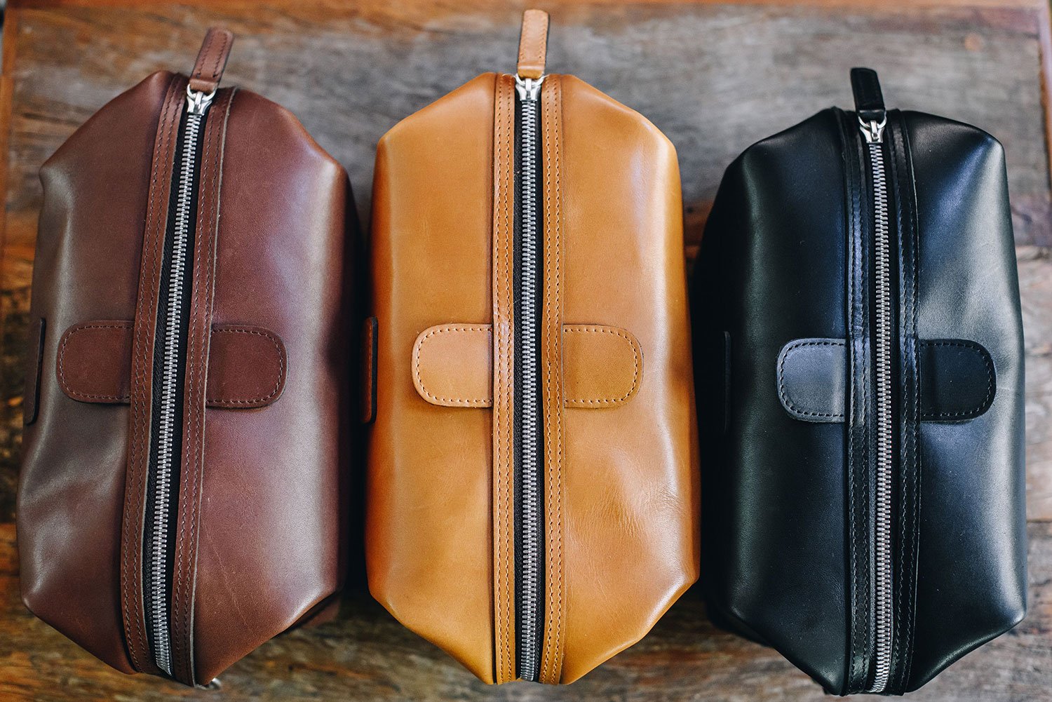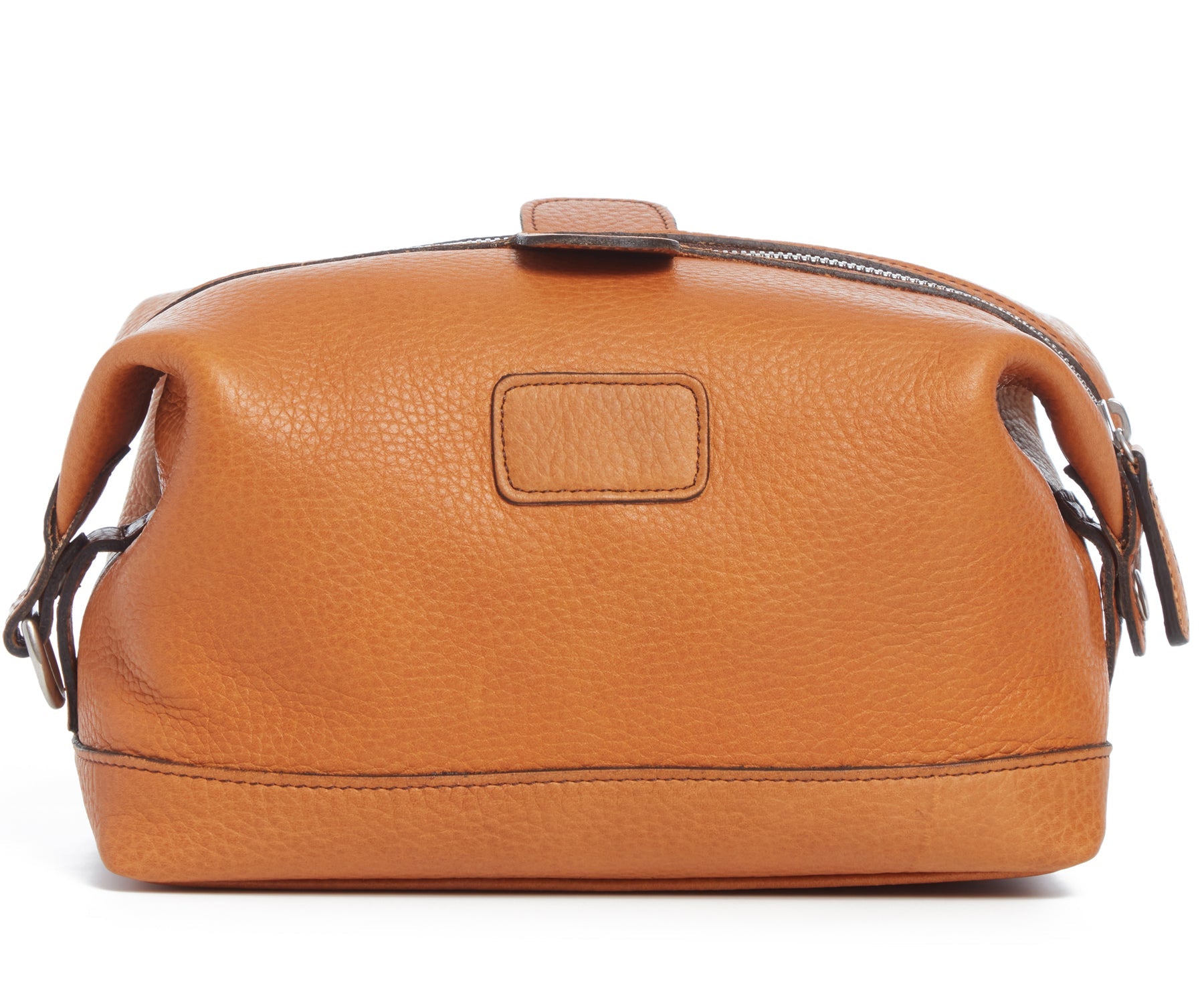 Leather Dopp KitThe Ryder dopp kit in Korchmar's Classic Leather is made of American cowhide leather that is selected from the top 5% of available hides. Colored only with aniline dyes, this leather retains its natural beauty over time and features visible markings that are characteristic of only the finest leather. The Ryder features a top zipper and snap down ends that allow for maximum expansion.