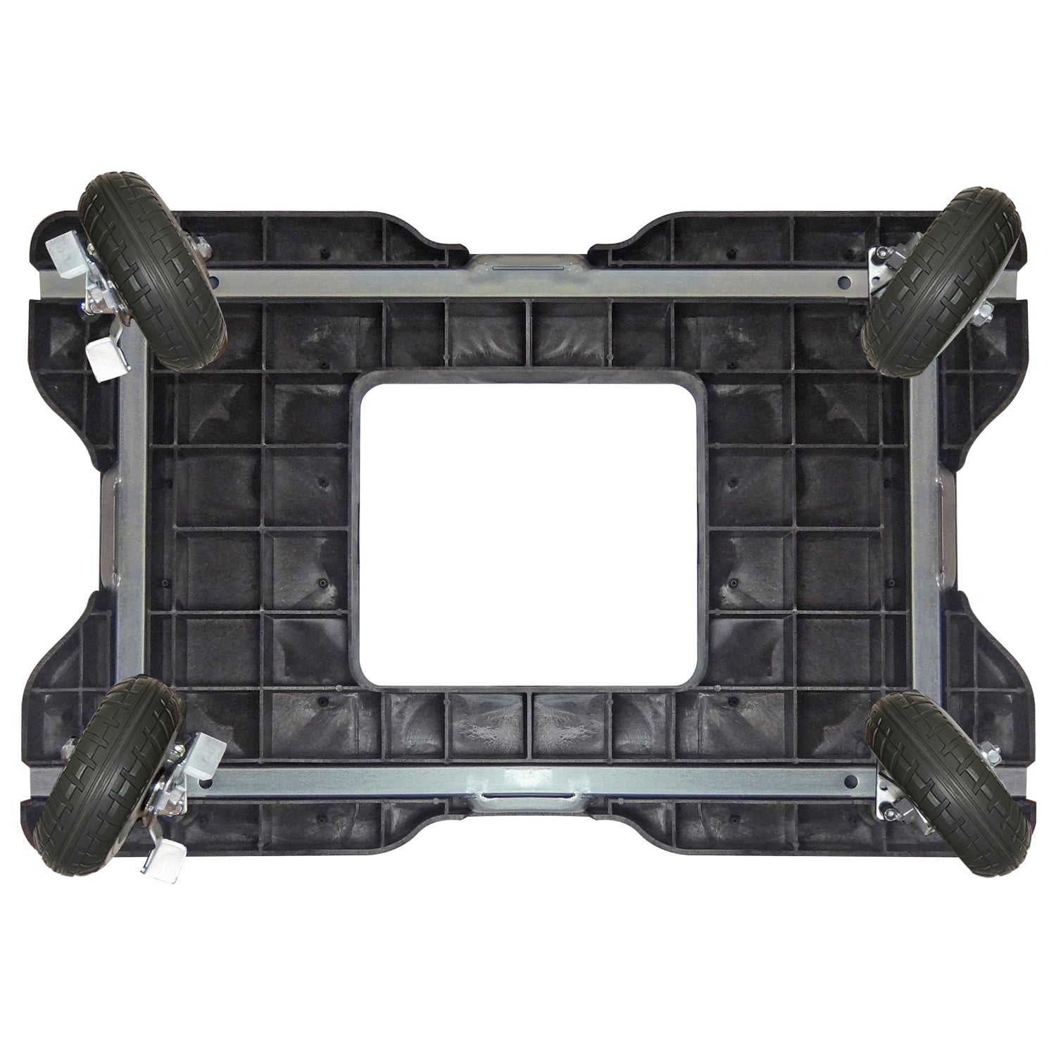 • EASY ROLLING: Precession ball-bearing, 6 inch solid synthetic stealth cushioned caster wheels for hard surfaces, dirt, gravel, grass, sensitive flooring. Dolly swivels in place. Brakes hold on hills.