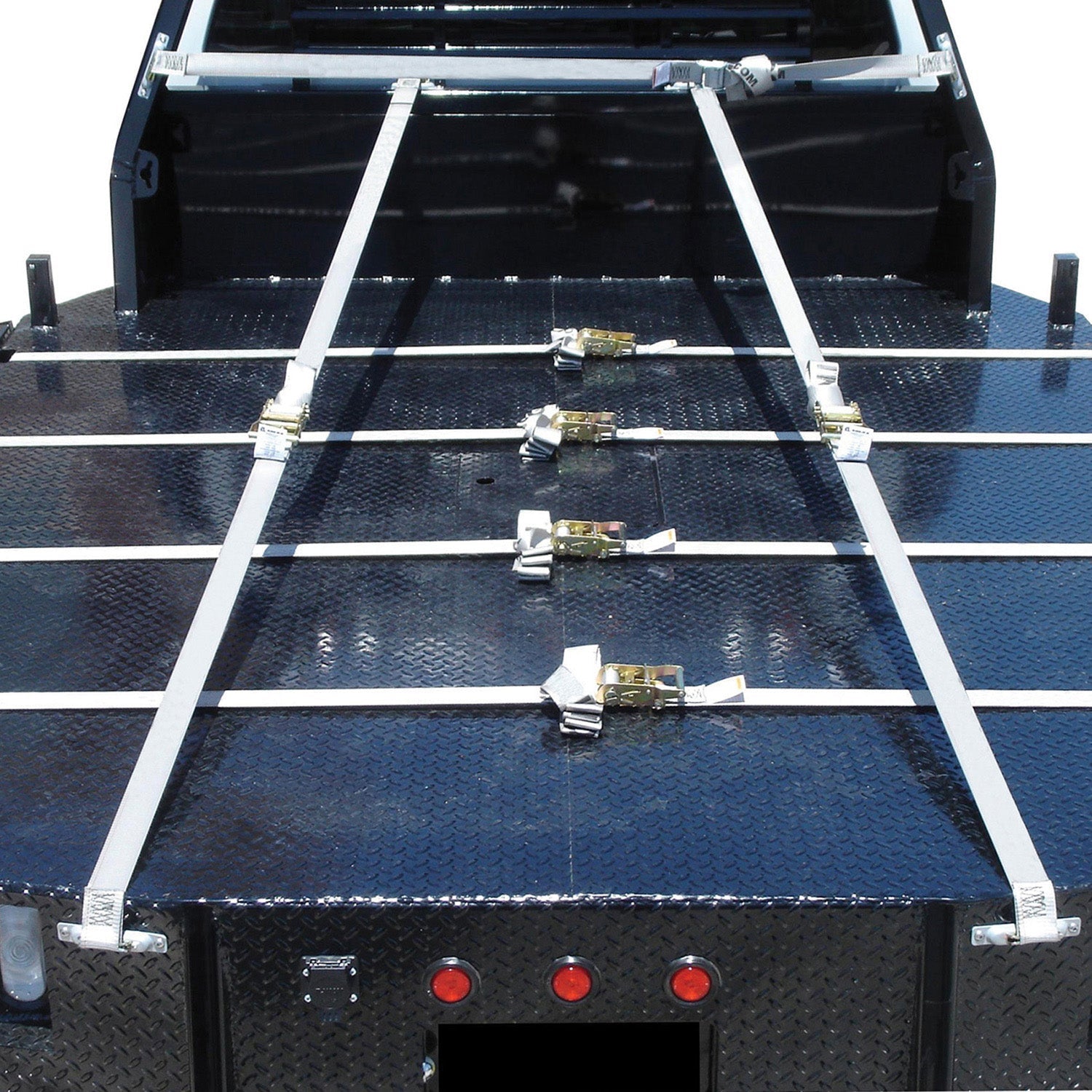 • MADE IN USA BUILT TO LAST: USA heavy-duty 10 gauge steel powder coated to resist contaminants/weather. Extra long 16 ft USA strap with high torque ratchet, 18 in fixed end, hook/loop storage fastener.
