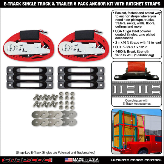 SNAP-LOC E-Track Single Truck Trailer 6-Pack Tie-Down Anchor Kit with 2 in x 16 ft Ratchet Straps 4,400 lb by SNAP-LOC CARGO CONTROL