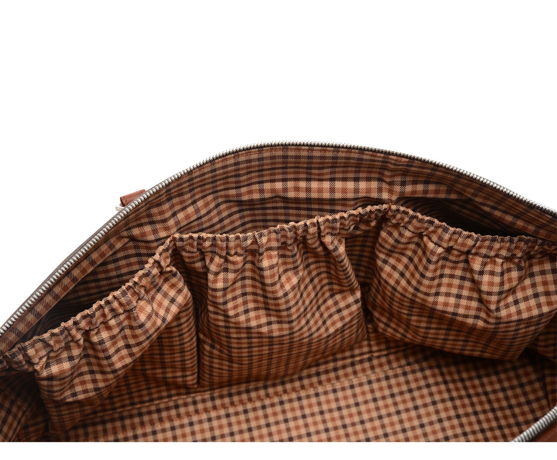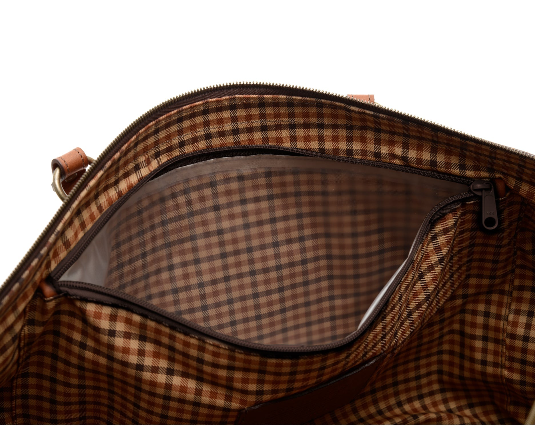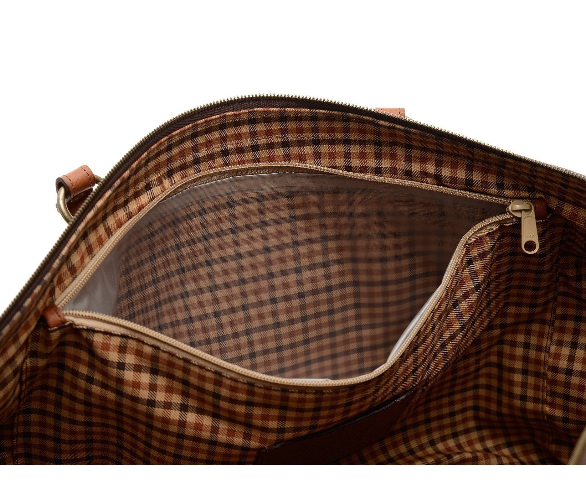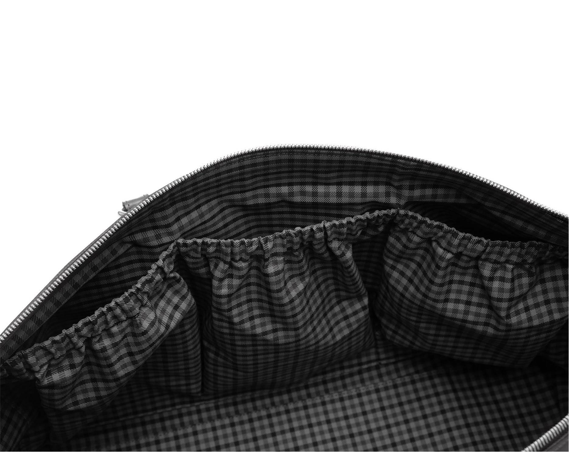 - Interior zippered pockets