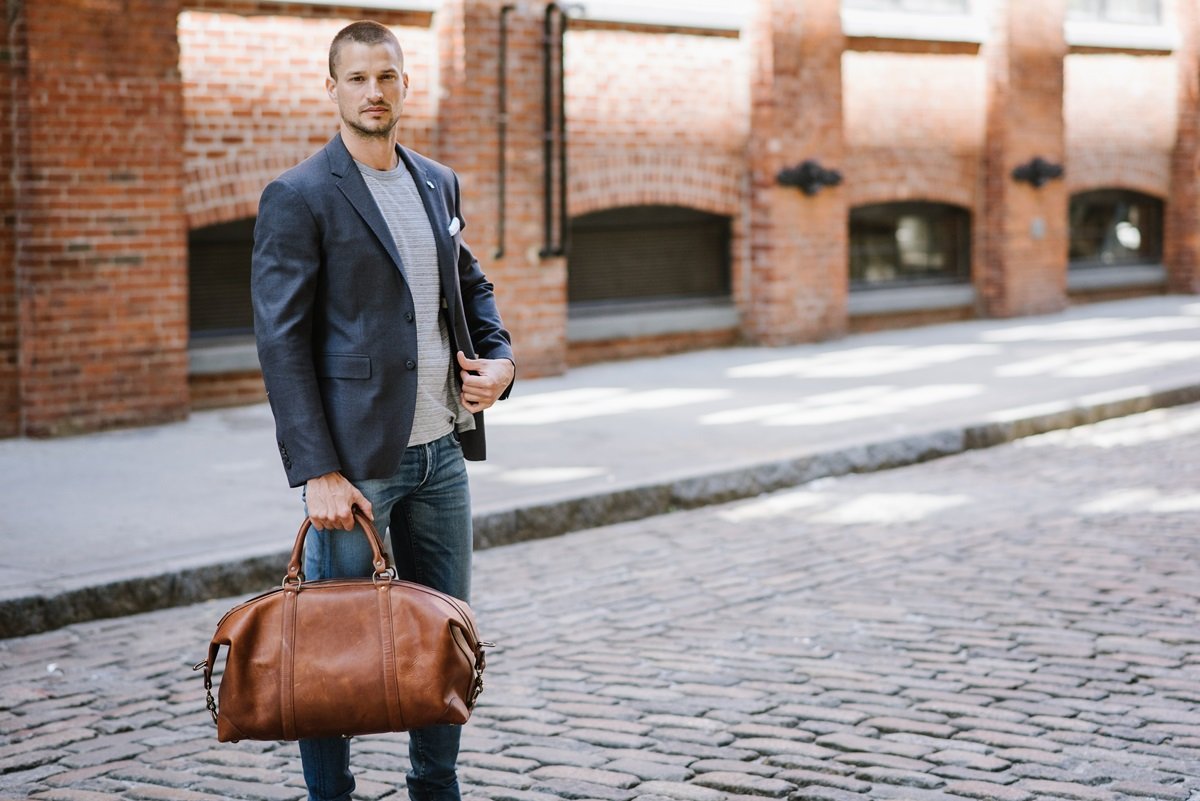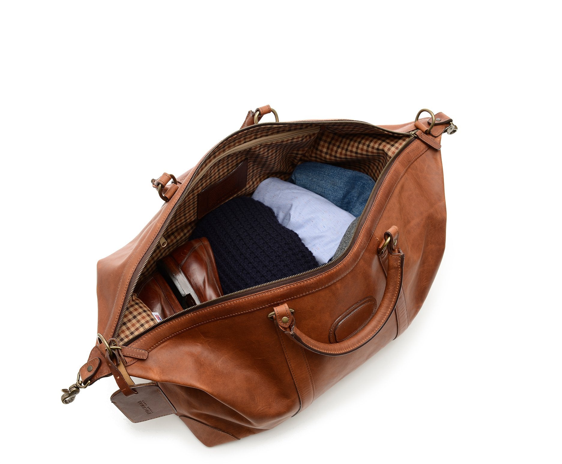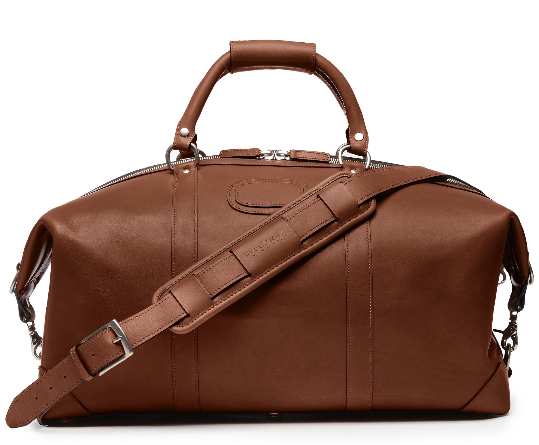 22" Leather WeekenderThe Twain weekender in Korchmar's Classic Leather is made of American cowhide leather that is selected from the top 5% of available hides. Colored only with aniline dyes, this leather retains its natural beauty over time and features visible markings that are characteristic of only the finest leather. One of our best-selling weekender styles, the Twain is ideal for leisure or business travel.